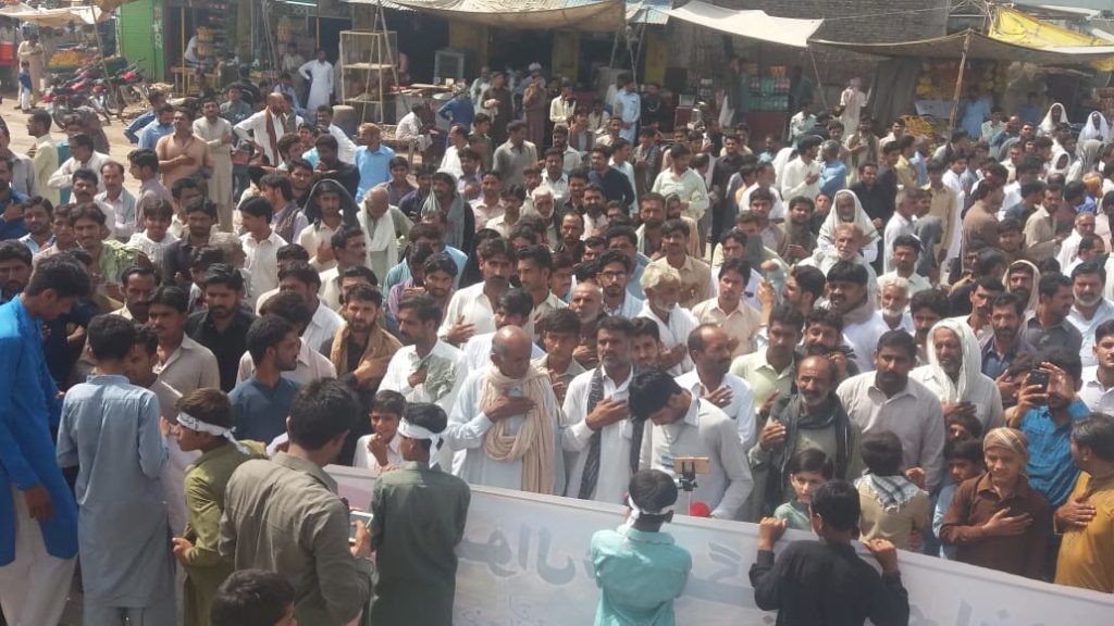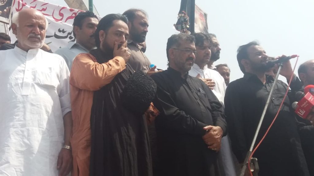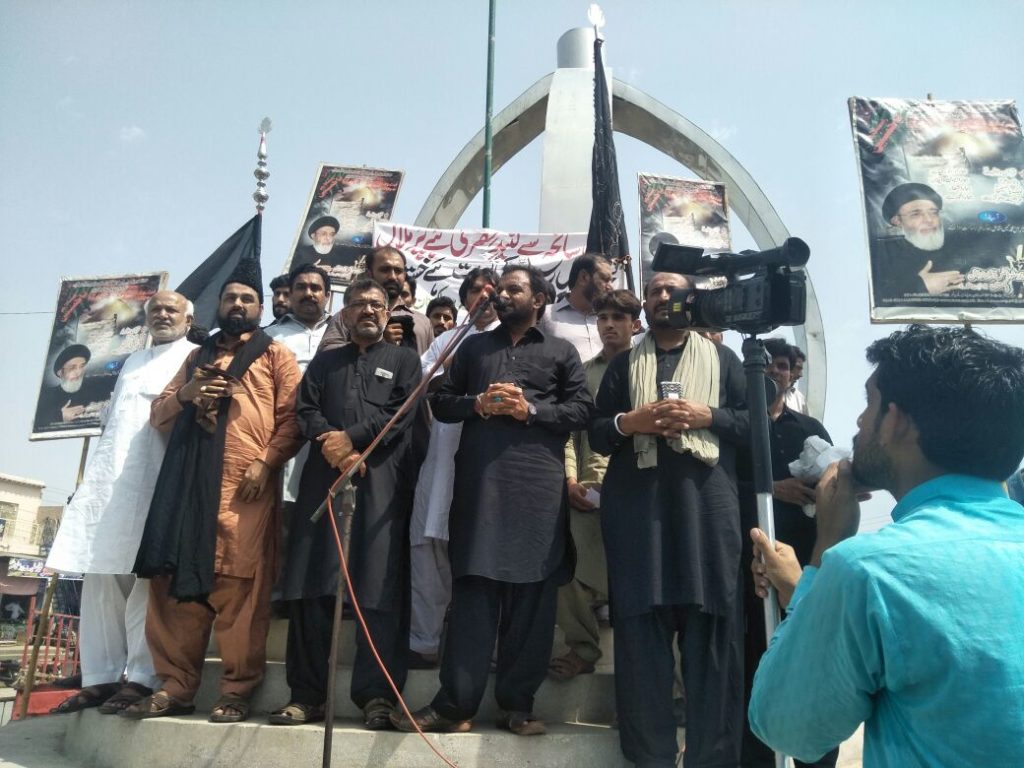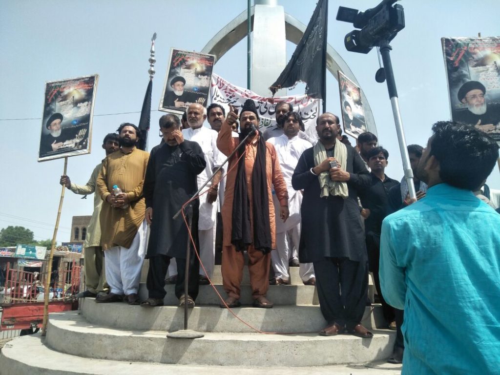 جلوس نے اٹھارہ ہزاری چوک پہنچ کر جلسے کی شکل اختیار کرلی جہاں سردار نوید بلوچ ، خطیب اہلسنت علامہ حامد رضا سلطانی ، تحریک تحفظ و لاء و عزا کے ترجمان علامہ ذاکر علی رضا کھوکھر ایڈووکیٹ نے مظاہر ین سے خطاب کیا۔ ذاکر علی رضا کھوکھر ایڈووکیٹ نے انتہائی رقت آمیز انداز میں بنت رسول ؐ حضرت فاطمہ زہرا ؑ سلام اللہ علیھا کے مصائب بیان کئے ۔