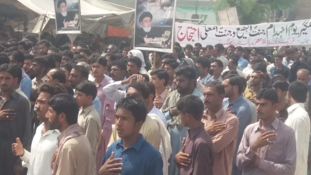 سلطان باہو نے یہ شعر واقعہ کربلا کے بارے میں تحریر فرمائے تھے تاریخ آج بھی اپنے آپ کو دہرا رہی ہے جب گذشتہ صدی میں رسول خداؐ کی بیٹی ، پاکیزہ اصحاب و اہلبیت اطہار کے مزارات پر بلڈوزر چلا دیئے گئے ۔اس سانحہ کے خلاف حضرت سلطان باہو اور حضرت شاہ جیونہ کی نگری میں قائد ملت جعفریہ آغا سید حامد علی شاہ موسوی کی کال پر تحریک نفاذ فقہ جعفریہ جھنگ کے زیر اہتمام لیہ روڈ اٹھارہ ہزاری سے انہدام جنت البقیع کے دلسوز سانحہ کے خلاف زبردست احتجاجی جلوس نکالا گیا۔ جلوس میں شیعہ سنی وحدت کا بے مثال مظاہرہ دیکھنے میں آیا۔ مظاہرے کی قیادت تحریک نفاذ فقہ جعفریہ کے رہنما سردار نوید خان بلوچ ،خضر خان، خطیب اہلسنت علامہ حامد رضا سلطانی ، تحریک تحفظ و لاء و عزا کے ترجمان علامہ ذاکر علی رضا کھوکھر ایڈووکیٹ ، درگاہوں کے متولیان ، ماتمی سالاروں نے کی ۔