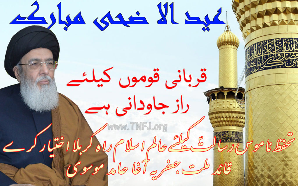 منی سے کربلا تک قربانیوں کے سلسلے نے اسلام کے گرد مضبوط حصار قائم کردیا عیدقرباں کے فلسفہ پر عمل کیا جائے، عید الاضحی پر قائد ملت جعفریہ کا پیغام
