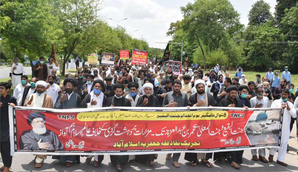 عالم اسلام خوارج کے خلاف متحد ہو جائے: اسلام آباد میں ٹی این ایف جے کا جنت البقیع کی بحالی کیلئے زبردست ماتمی احتجاج