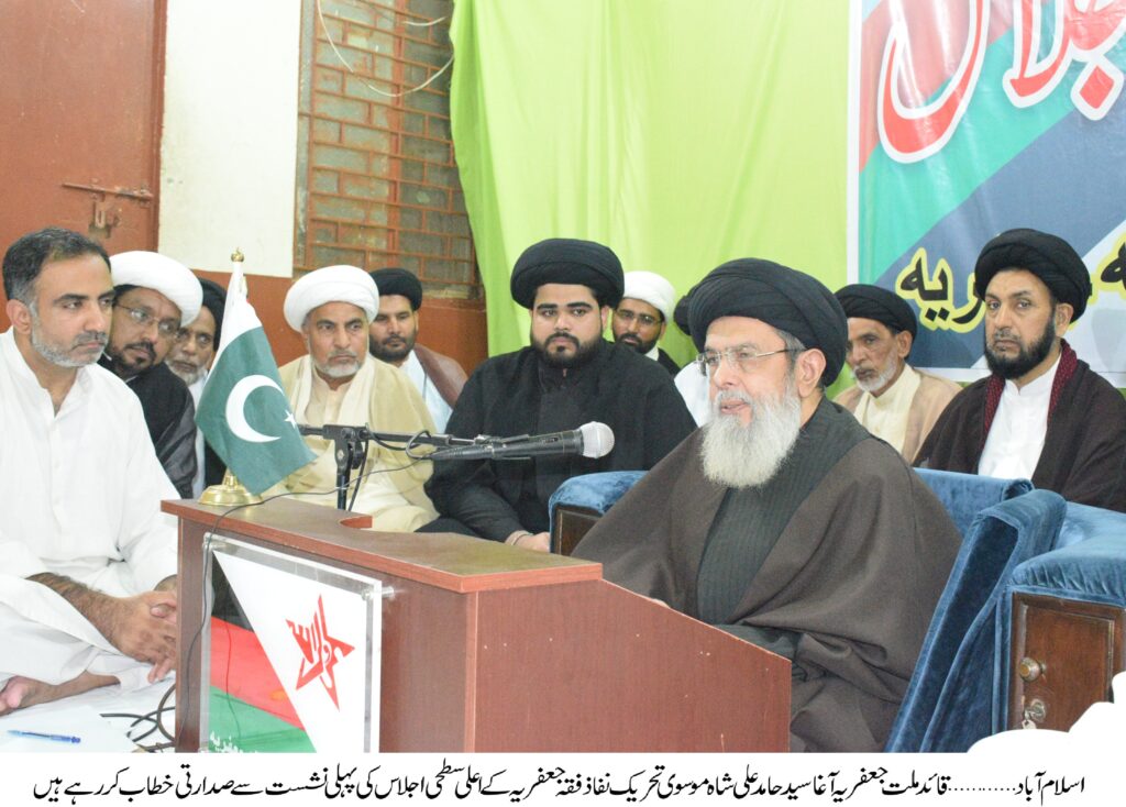 انہوں نے کہا کہ تحریک نفاذفقہ جعفریہ کا قیام پاکستان کو گروہی سٹیٹ بنانے کے اعلان کے ردعمل کے طور پر لایا گیا جس کامقصدپاکستان کے دوقومی نظریے کو بچانا تھا، 6جولائی 80کو اسی جدوجہد کی راہ میں ہم نے سیکرٹریٹ پر پاکستان کے پرچم کے ساتھ حضرت عباس ؑکا علم لہرا کے بتایا کہ وطن کی بنیادیں اور نظریہ بچانے کیلئے کربلا بسانا جانتے ہیں، ضیاء الحق نے مذہبی آزادیوں میلادالنبی اور عزاداری پر حملہ کیا تو 8ماہ پرامن حسینی محاذ ایجی ٹیشن کرکے اسے ناکام کیا، پرائیویٹ شریعت بل کے ذریعے چور دروازے سے73کے آئین پر حملہ کیا تو سنی برادران کے ساتھ مل کر اسے ناکام بنایاآئندہ بھی کوئی ایسی سازش کامیاب نہیں ہو نے دیں گے۔