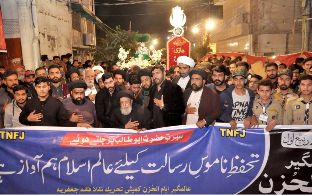 حضرت ابوطالبؑ کا غم سنت رسولؐ ہے جنہوں نے تحفظ رسالتؐ پر سبھی کچھ قربان کردیا،جلوس میں خطاب؛: ناموس رسالت ؐ کے تحفظ کیلئے ملک بھر میں ماتمی احتجاج