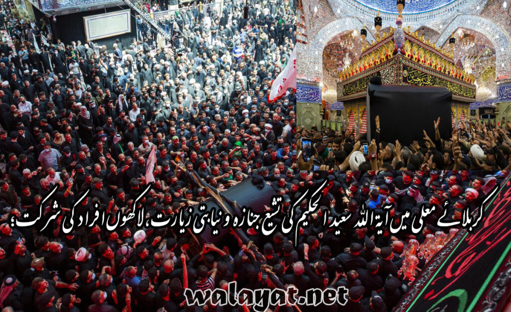 کربلائے معلی میں آیۃ اللہ سعید الحکیم کی تشیع جنازہ و نیابتی زیارت ، لاکھوں افراد کی شرکت؛ میت نجف اشرف روانہ