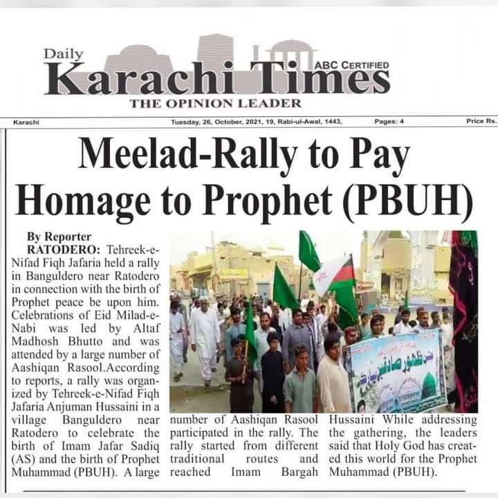 میلاد رسول ؐ کے جلوسوں میں اتحاد و یکجہتی نے دنیا کو بتا دیا کہ ذات مصطفیؑ مسلمانوں کے اتحاد اور قوت کا راز ہے ناموس مصطفیؐ کے تحفظ کیلئے شیعہ سنی برادران ہم آواز ہیں اور ہمیشہ ہم آواز رہیں گے ۔