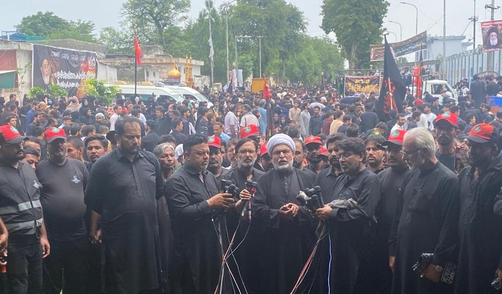 اسلام آباد 9محرم کا مرکزی جلوس علم و ذوالجناح ،لاکھوں عزاداروں کی شرکت؛ سیدہ زینب بنت علی ؑ کے مزارپر بم دھماکے عالم اسلام کی غیرت پرحملے ہیں ، علامہ بشارت امامی