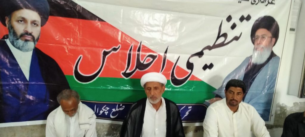 ٹی این ایف جے صوبائی ناظم الامور پنجاب جناب علامہ مقصود رضا عابد صاحب نے تنظيمی اجلاس میں چکوال کے سادات و مومنین کے جوش و ولولہ سے بھرپور شرکت کو سراہتے ھوۓ اس امر پر زور دیتے ہوۓ کہا کہ آقاۓ موسوی کے بتائے ہوئے رستے پر سربراہِ تحریک نفاذ فقہ جعفریہ پاکستان جناب علامہ سید حسین مقدسی صاحب کی رہنمائی میں ہم مشن ولا و عزاداری سید الشہدا، حرمت سادات، احترام مرجعیت و وابستگی بامرکزیت کے لیے کوئی دقیقہ فرو گذاشت نہیں کریں گے اور ان شاء اللہ خون کے آخری قطرے تک اپنا سفر جاری رکھیں گے۔ سب شرکاء نے بھرپور تائید کی اور مشن کے لیے ہر طرح کی قربانیاں پیش کرنے کا عہد کیا۔