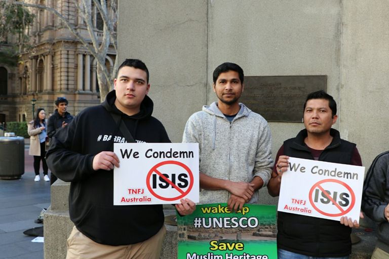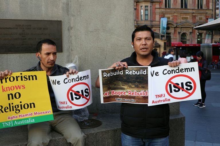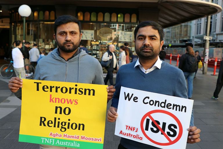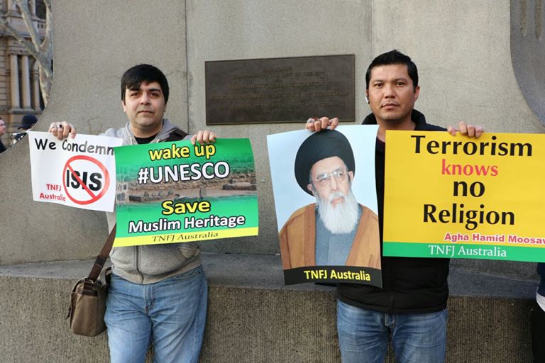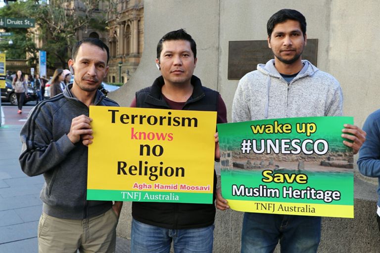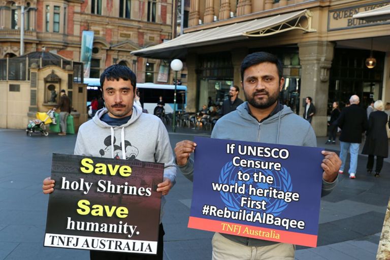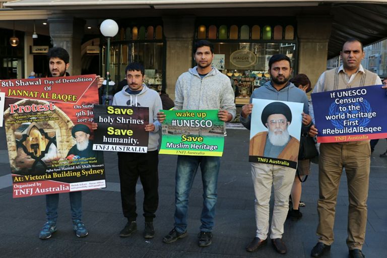 کوئین وکٹوریہ بلڈنگ سڈنی کے سامنے جنت البقیع کی بحالی کیلئے تحریک نفاذ فقہ جعفریہ کا مظاہرہ