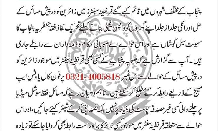Read Moreتحریک نفاذ فقہ جعفریہ پنجاب کا زائرین سہولت سیل پنجاب کے مختلف شہروں میں قائم کیئے گئے قرنطینہ سینٹرز میں