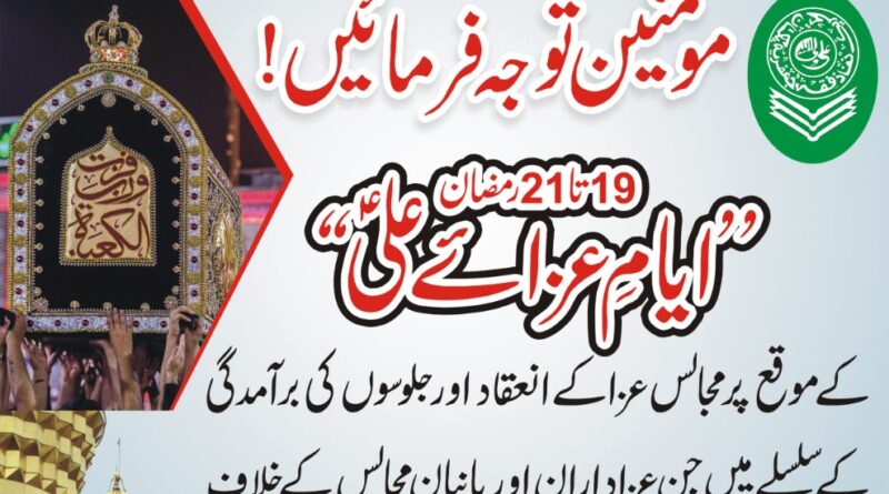 Read Moreاسلام ۤباد(ولایت نیوز) تحریک نفاذ فقہ جعفریہ کی جعفریہ ایکشن کمیٹی نے شہادت امیر کائنات علی ابن ابی طالب ؑ